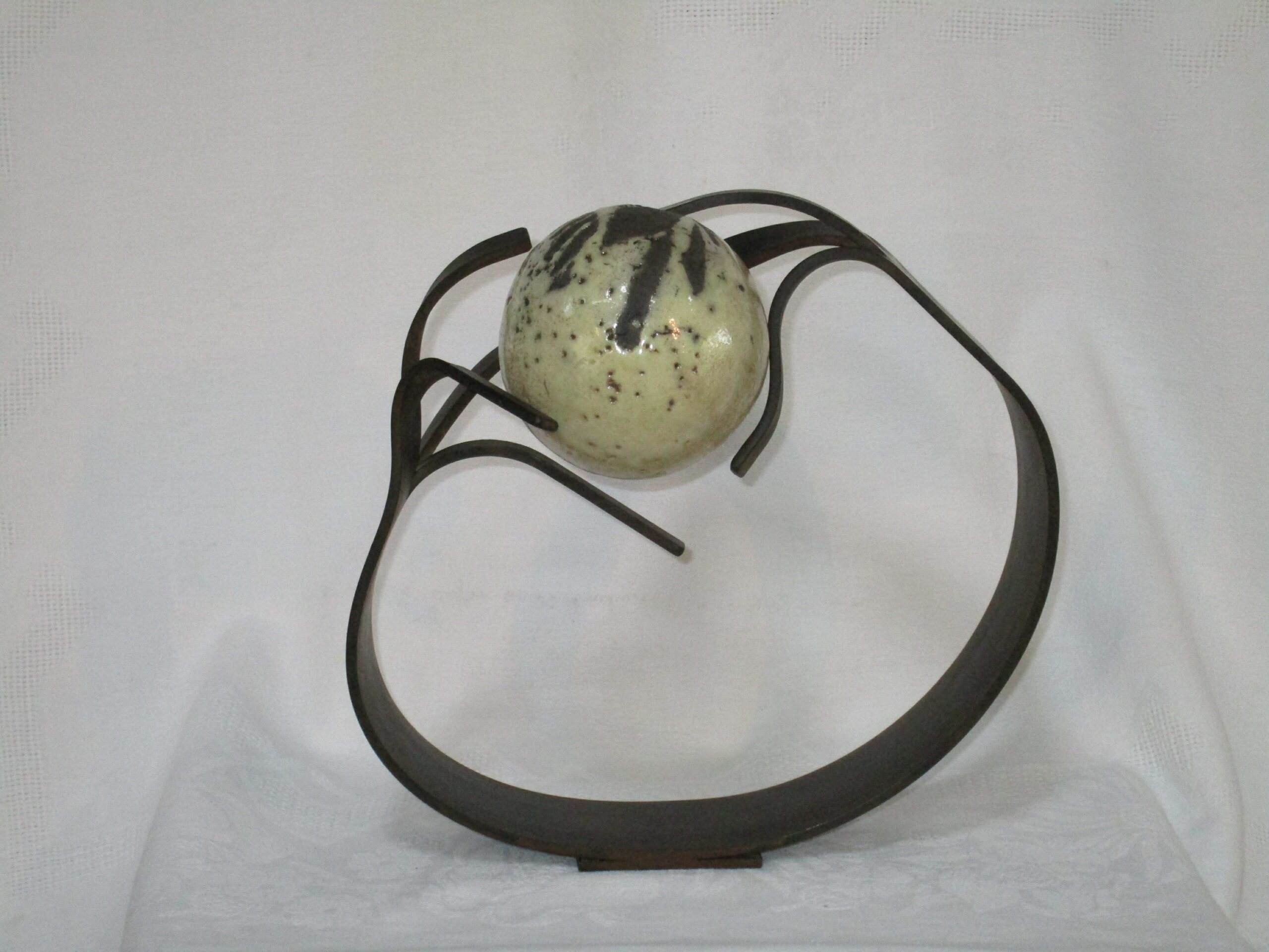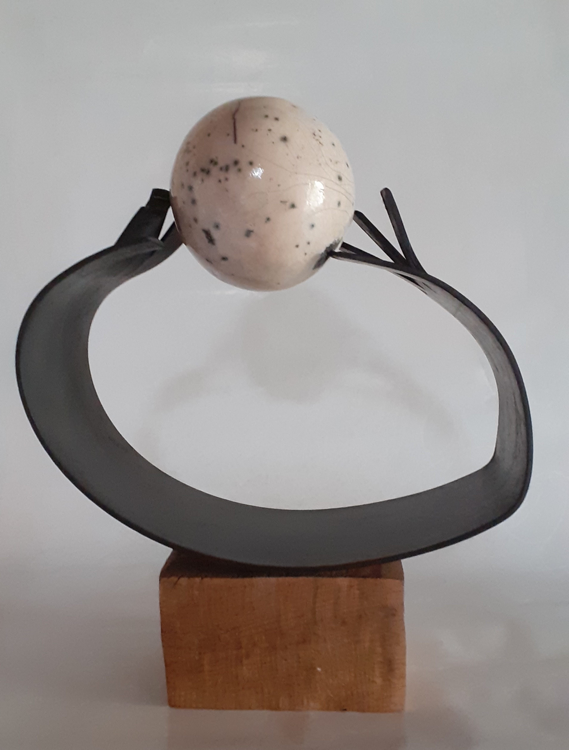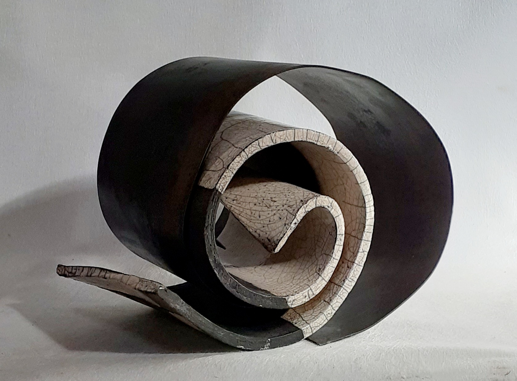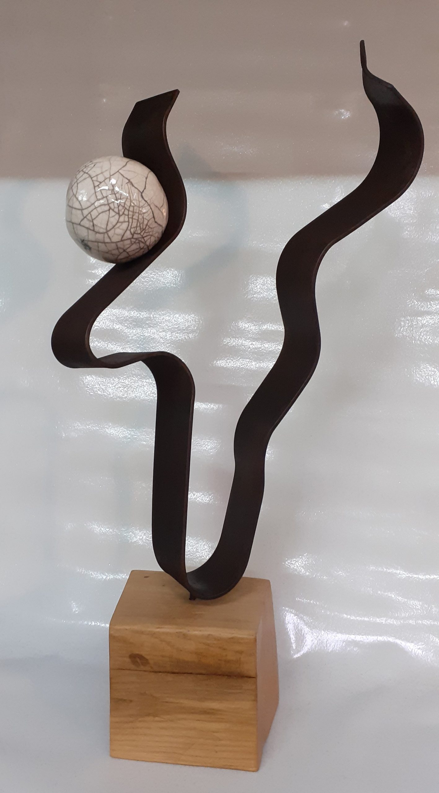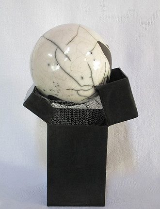 L’association du raku aux sculptures métal vient de mon désir de fusionner le métal et le minéral. Cette terre émaillée incarne l’esthétique fondée sur le dépouillement.