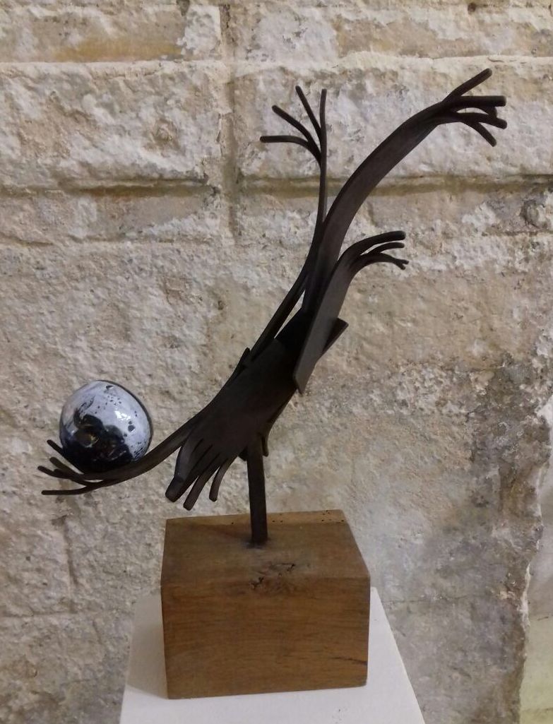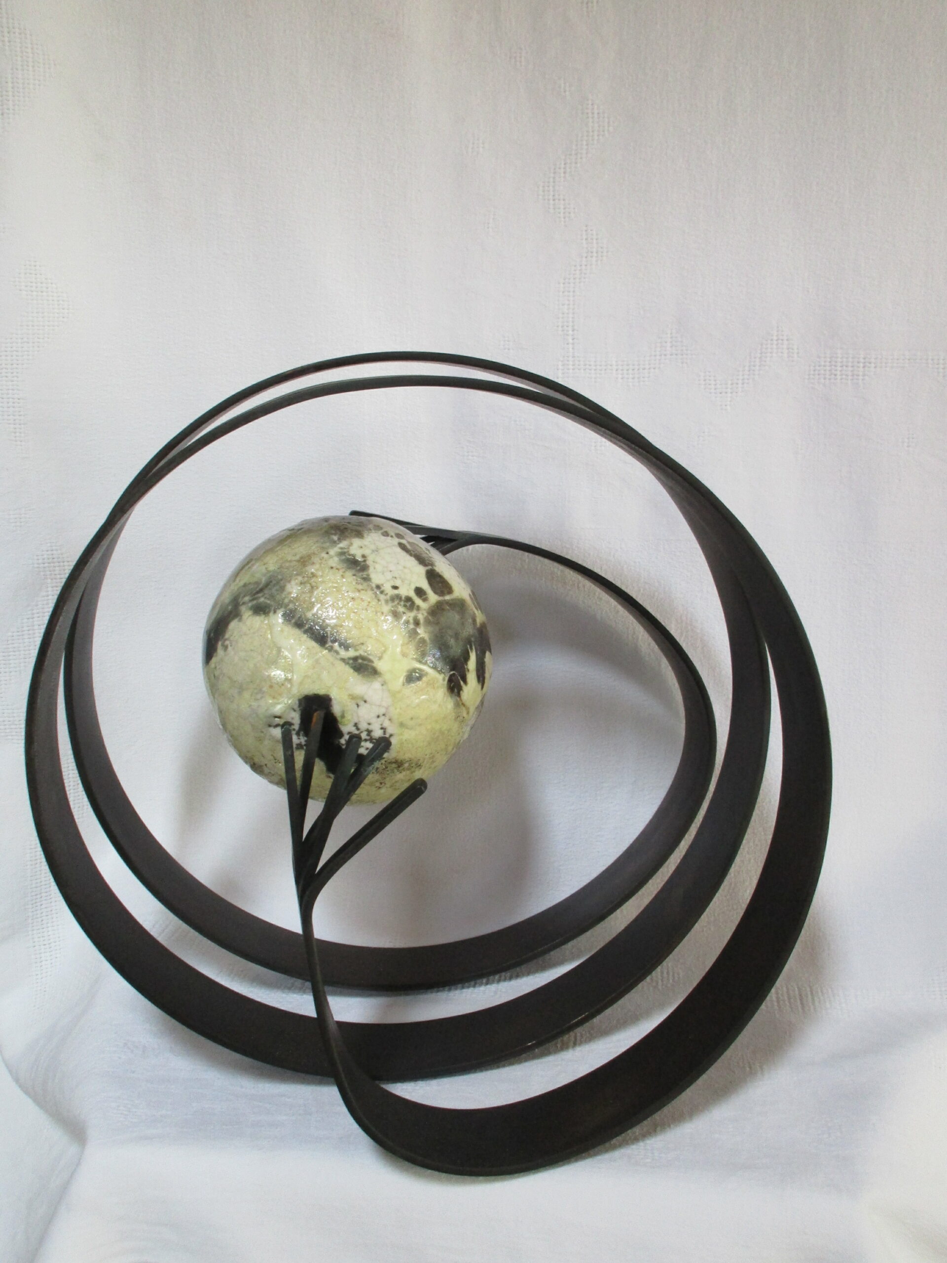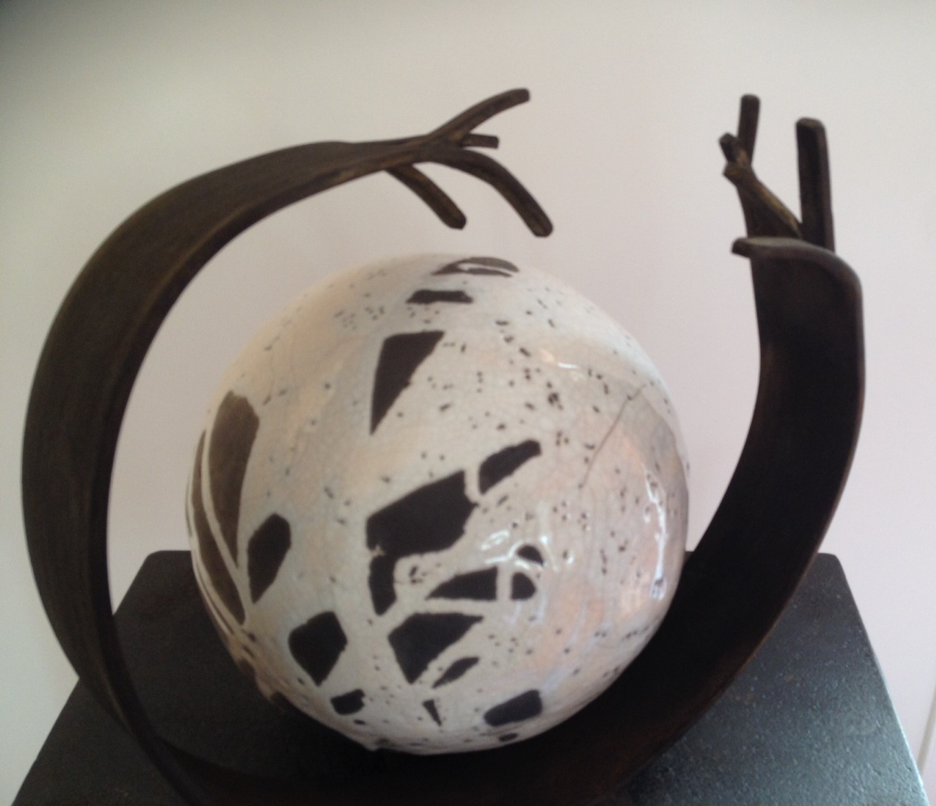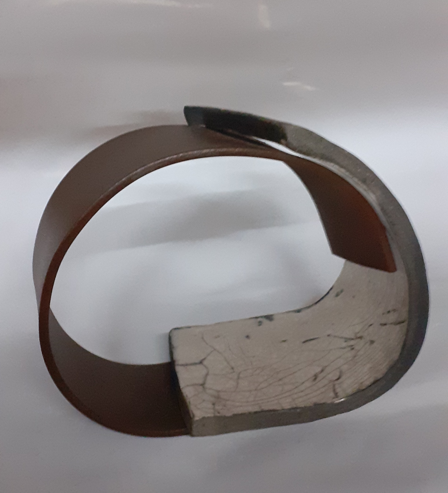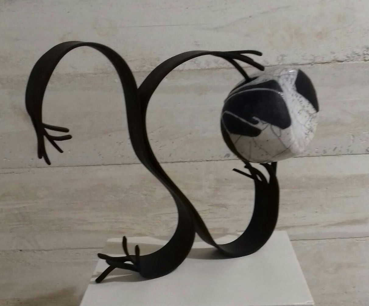 L’association du raku aux sculptures métal vient de mon désir de fusionner le métal et le minéral. Cette terre émaillée incarne l’esthétique fondée sur le dépouillement.
