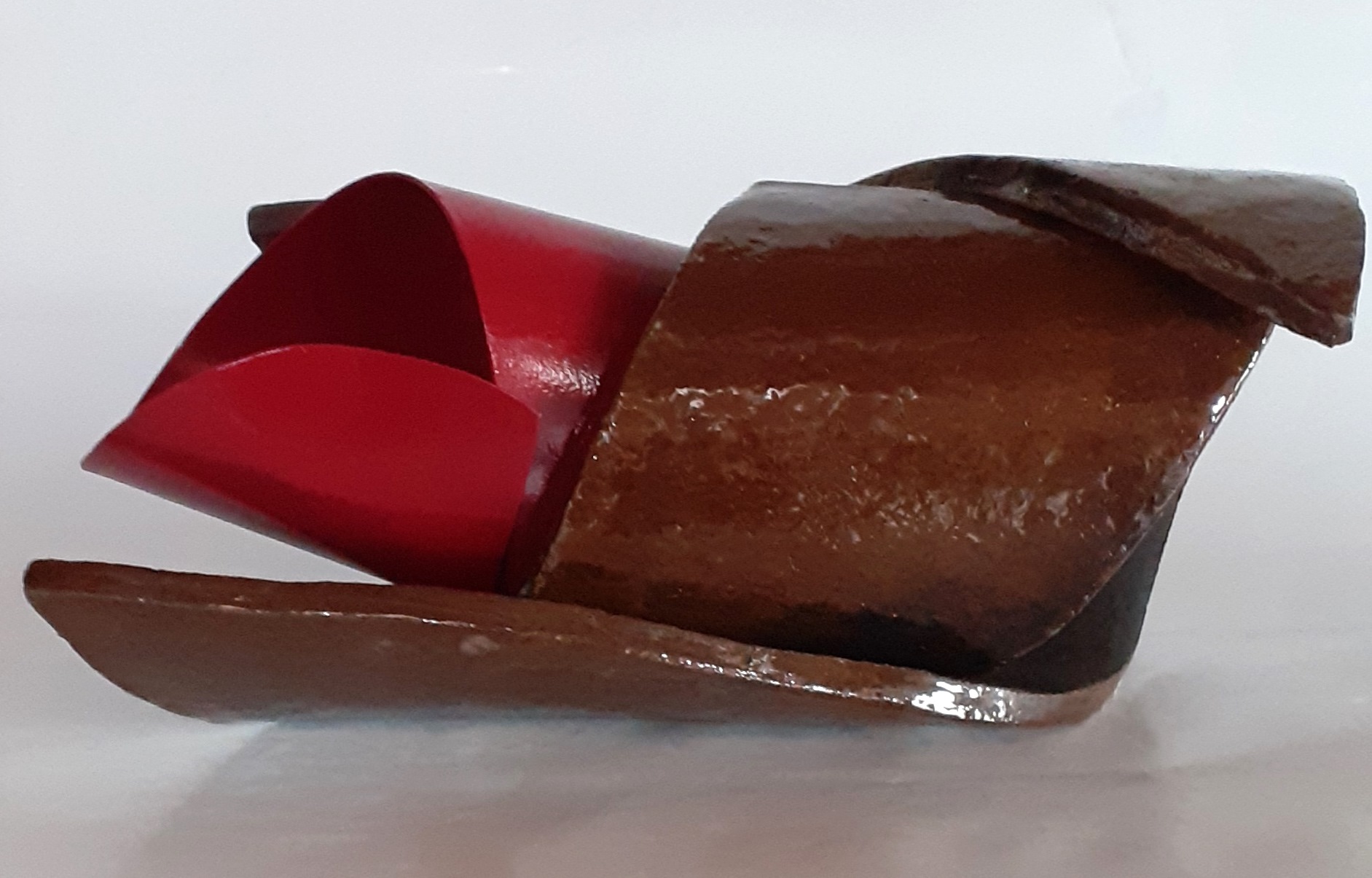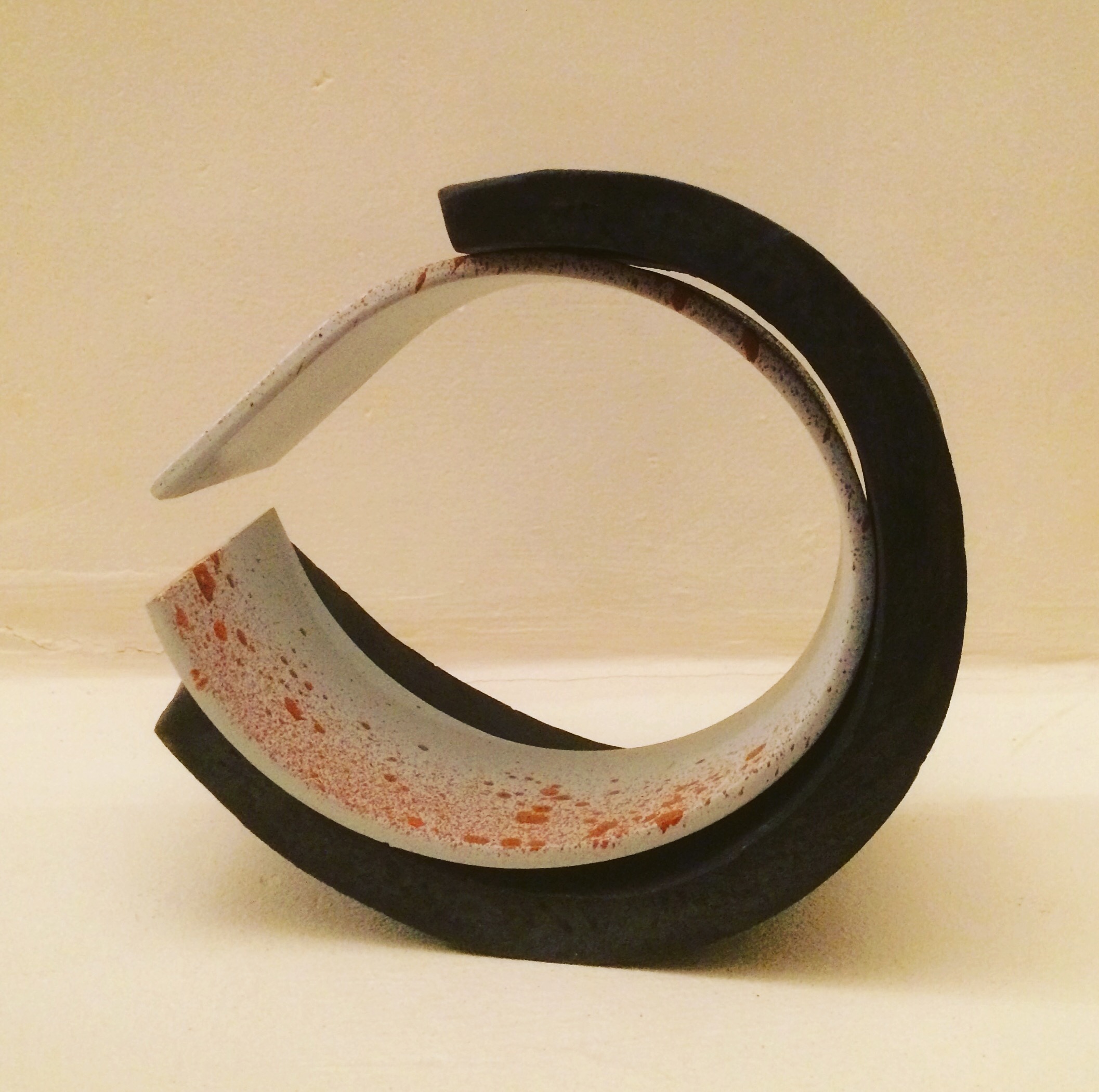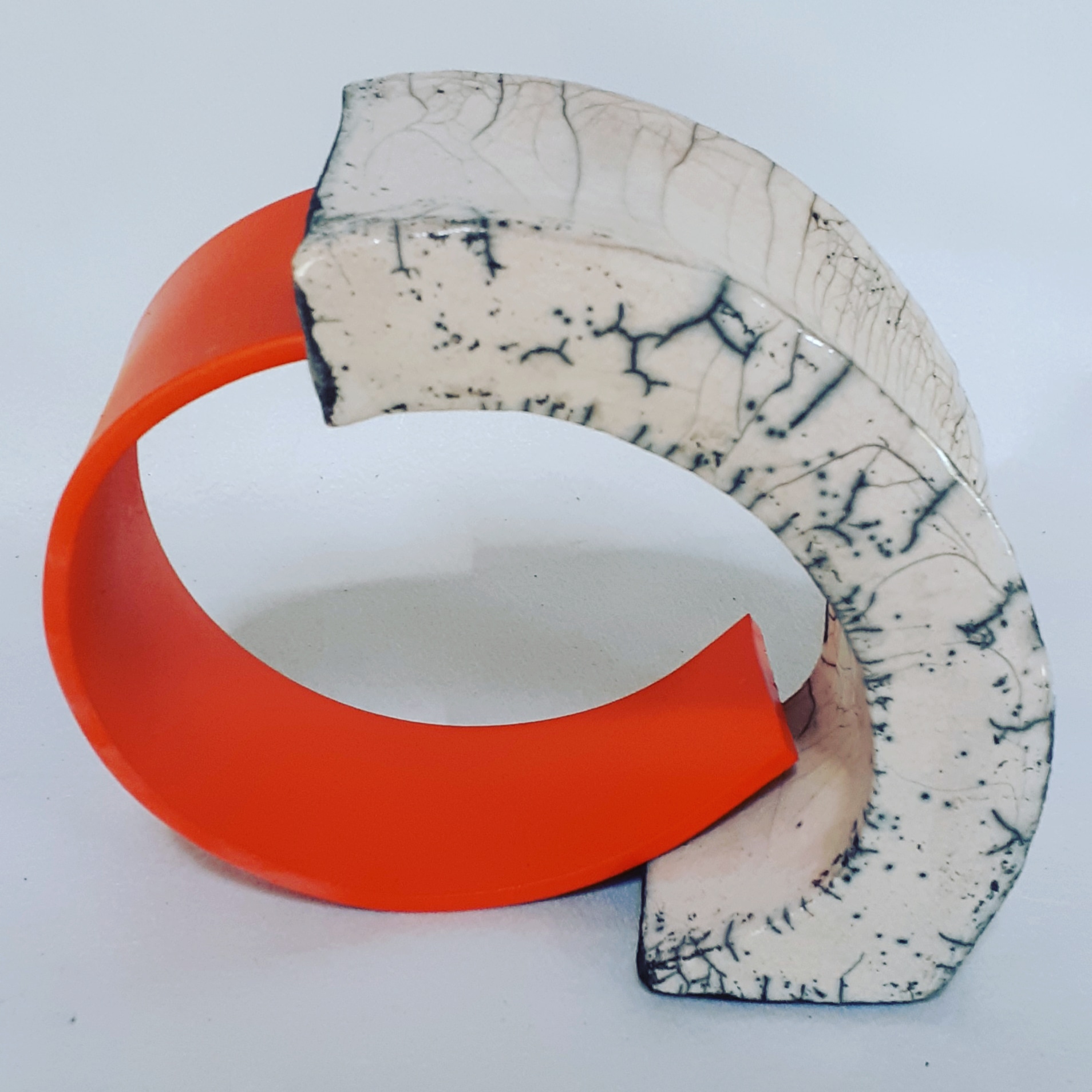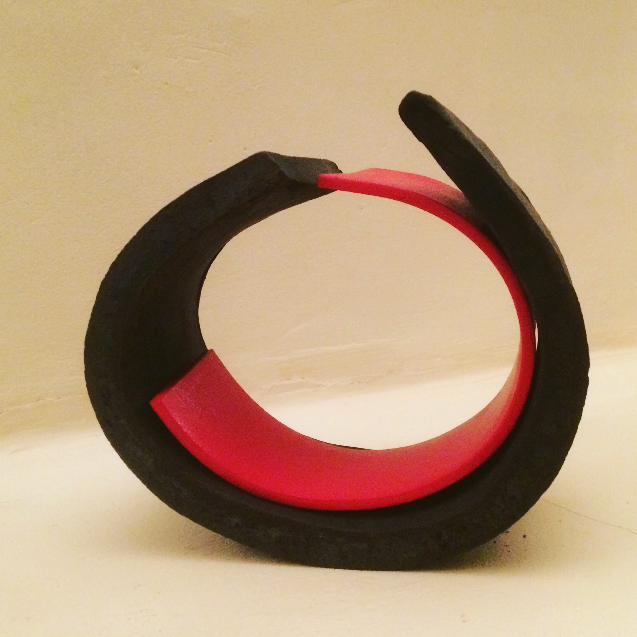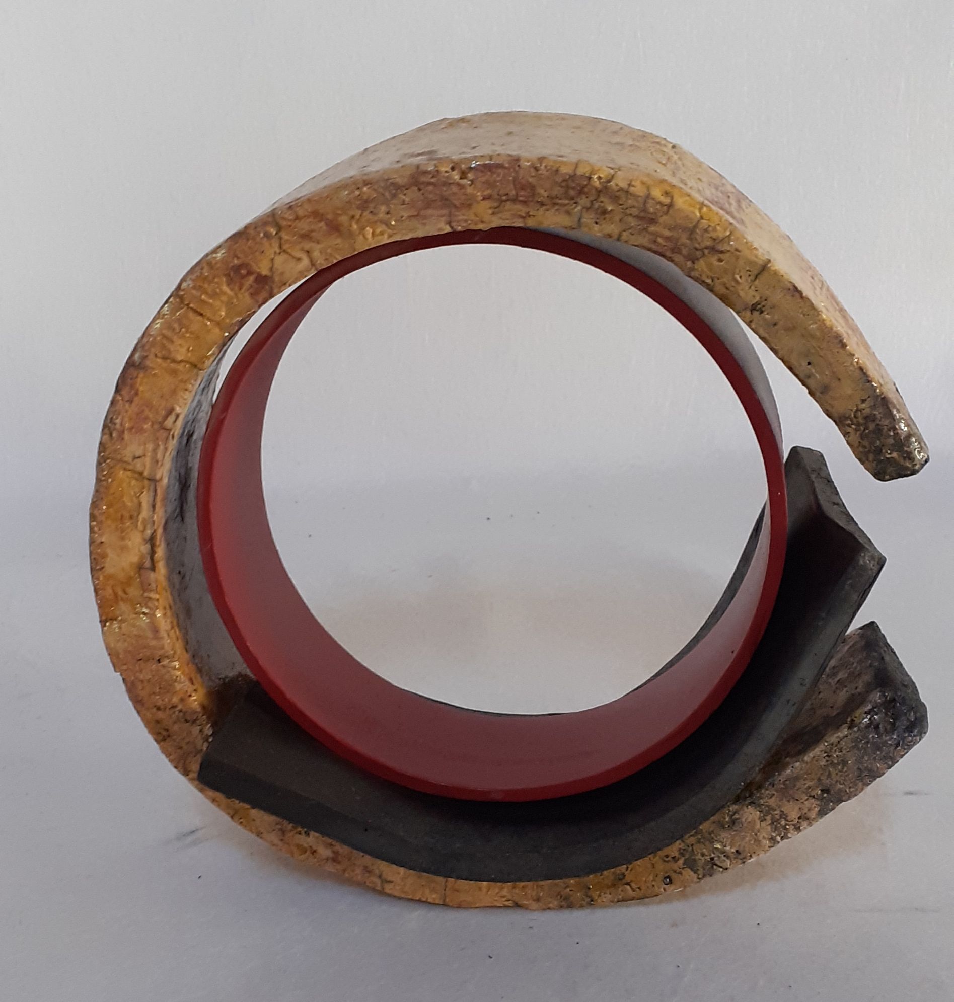 L’association du raku aux sculptures métal vient de mon désir de fusionner le métal et le minéral. Cette terre émaillée incarne l’esthétique fondée sur le dépouillement.