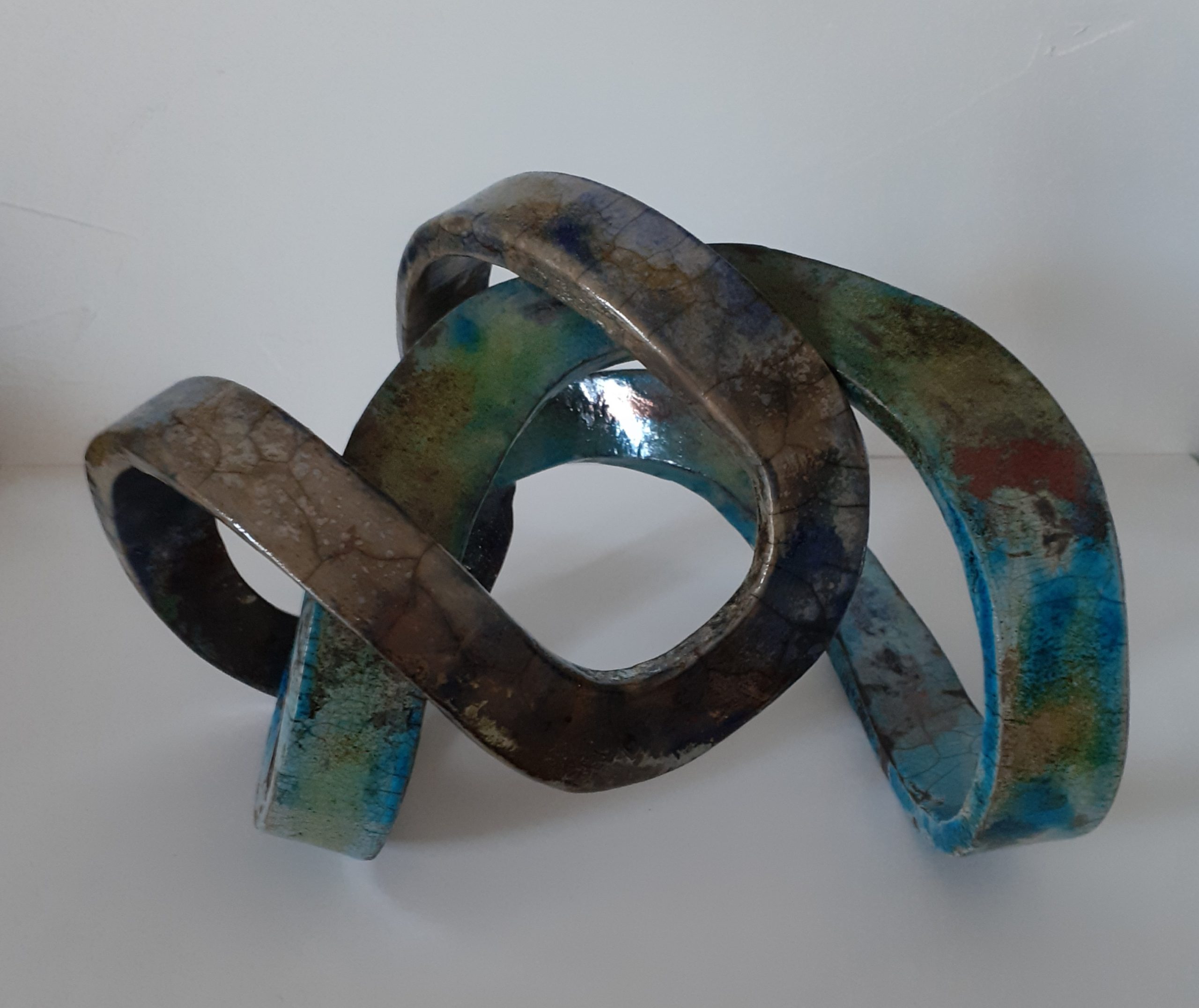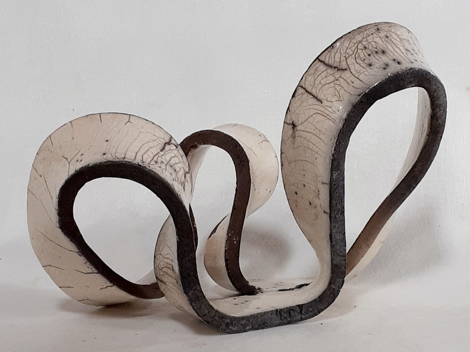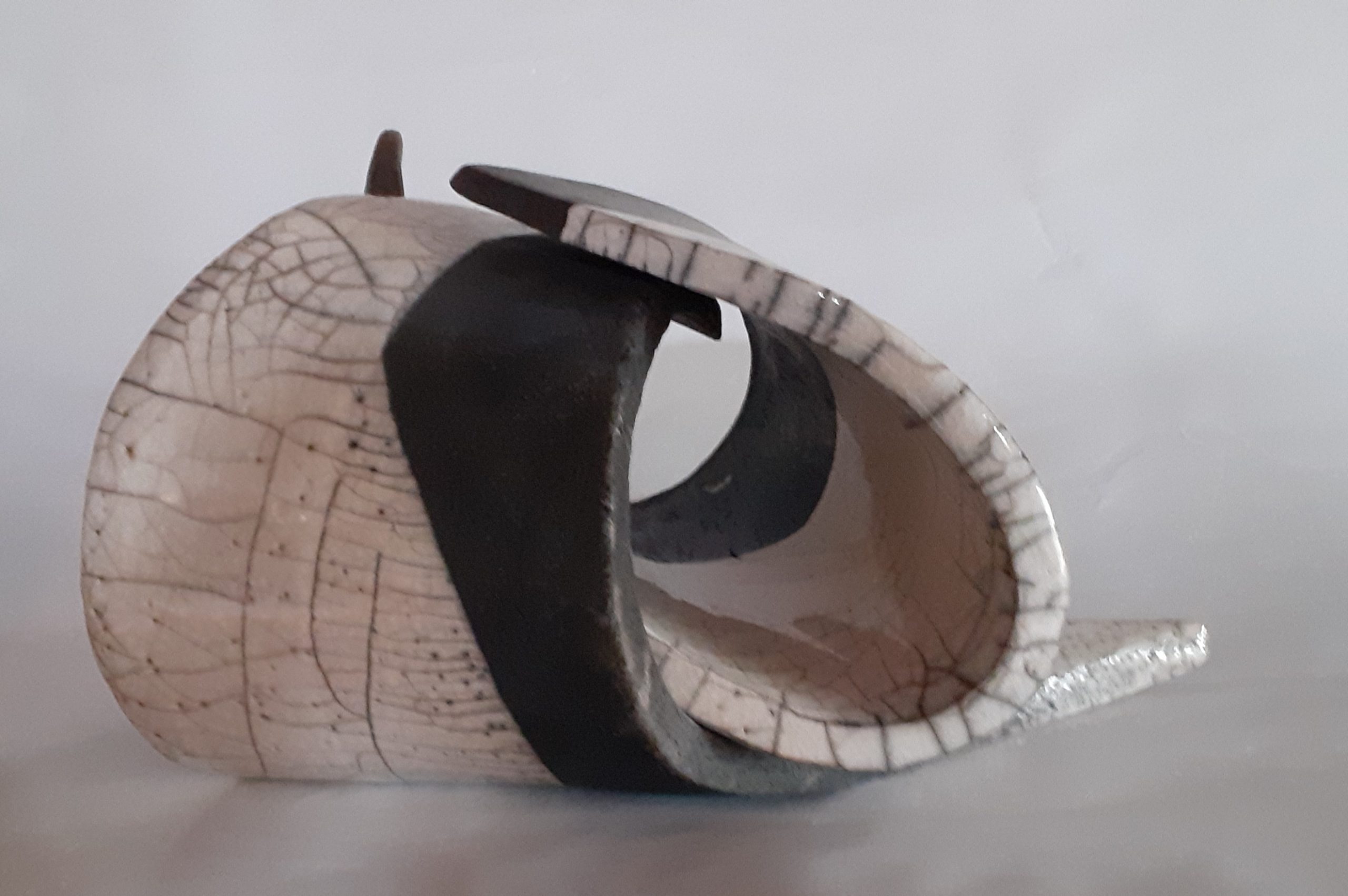 Mes sculptures en terre aux lignes abstraites sont cuitent selon la technique Raku et jouent avec le noir et le blanc. L’usage des oxydes sur certaines sculptures revélent après cuisson des nuances métalliques qui ne sont pas sans rappeler mes sculptures métal.